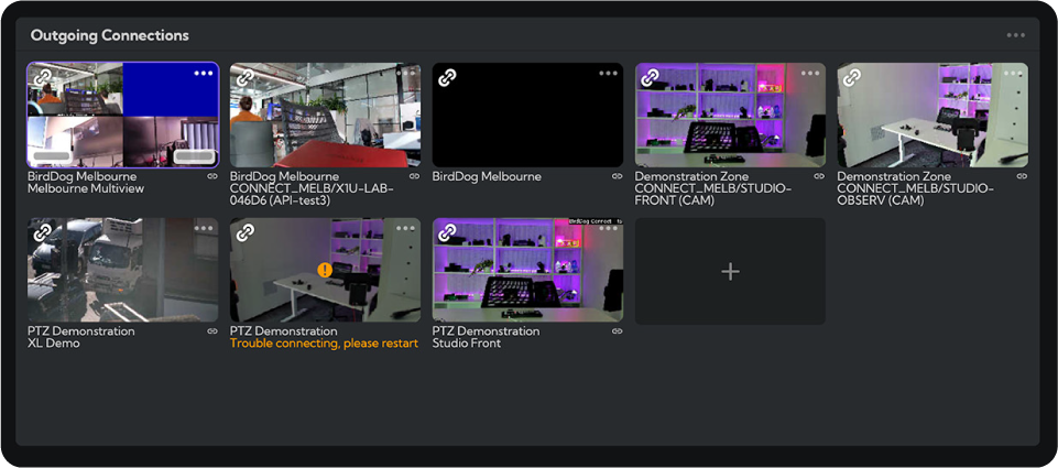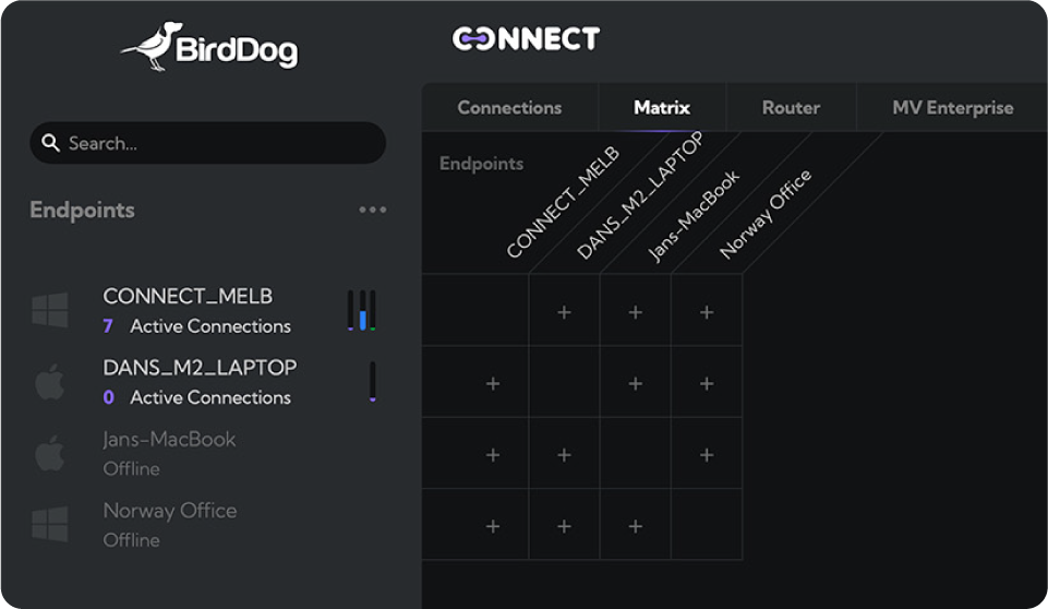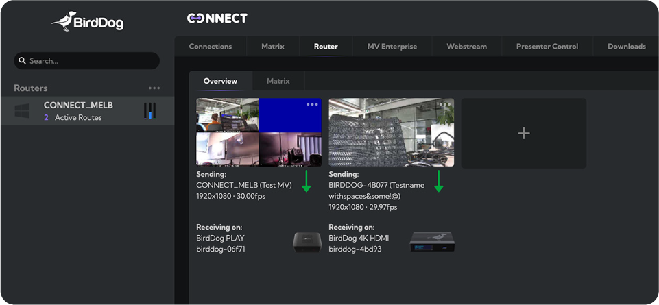 At the heart of BirdDog Connect is a powerful new video router—and it’s a game-changer. Any source on your network—or even across sites via BirdDog Cloud—can be routed instantly to any screen or destination. Want your editor’s feed in the boardroom? Need to flip a return feed from stage to studio? Done. It’s true end-to-end media control, right from your browser.